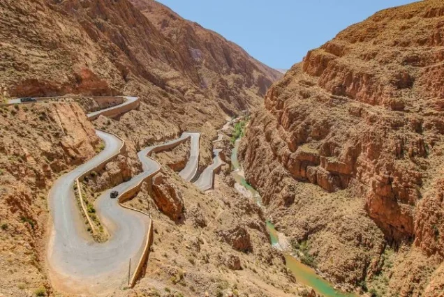 Travel south across the High Atlas Mountains, passing through the Tizi n’Tichka Pass at 2,260 meters above sea level. Along the way, enjoy scenic stops for photos and panoramic views of mountain peaks and Berber villages.