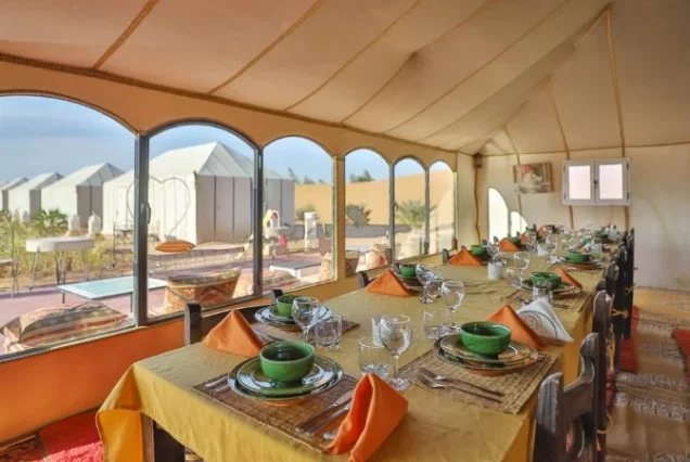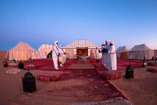 Accommodation in Berber tents with dinner and breakfast, and a live Berber music show after dinner.
