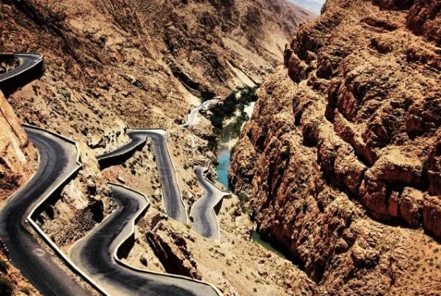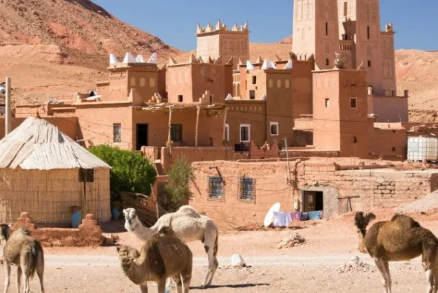 Departing from Marrakech, your adventure begins with a scenic drive across the High Atlas Mountains via the Tizi n’Tichka Pass (2,260 m), revealing sweeping views and traditional Berber villages. Visit the world-famous Kasbah Ait Ben Haddou, a UNESCO World Heritage Site and a backdrop for Hollywood classics like Gladiator and The Jewel of the Nile. Continue to Ouarzazate, the gateway to the desert, before spending your first night in the enchanting Dades Valley, known for its dramatic canyons and rose-scented air.
