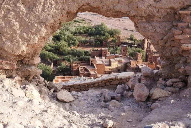 In the morning, after a leisurely breakfast, we'll travel along a dirt track to visit the nomads who live in the Ouzina area. Afterward, we'll go to the barite mines to see the workings and learn how they operate (barite is a mineral extracted there and transported to Europe, where it's used to make glass). Then we'll head to the Bourika Oasis, where we'll have a picnic lunch (Moroccan salad or similar) and grilled chicken. After lunch, we'll visit the Lost City or Oubahlou (the lost city or the Portuguese city), which consists of ancient Portuguese ruins. We'll take a stroll through the site, and in the afternoon, we'll arrive at the Ramlia Oasis, where we can enjoy tea at a café and explore the village and its oasis. In the late afternoon, we'll go to watch the sunset over the Erg Ouzina dunes to experience the tranquility and peace of this wild desert.