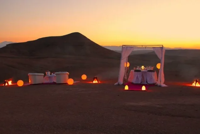 After this memorable dinner experience, relax in your private vehicle as you return to Marrakech, arriving around 10:00 PM — your heart full of memories from this extraordinary day.