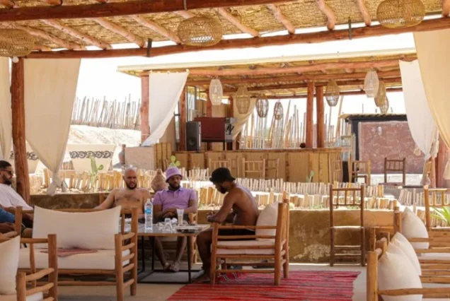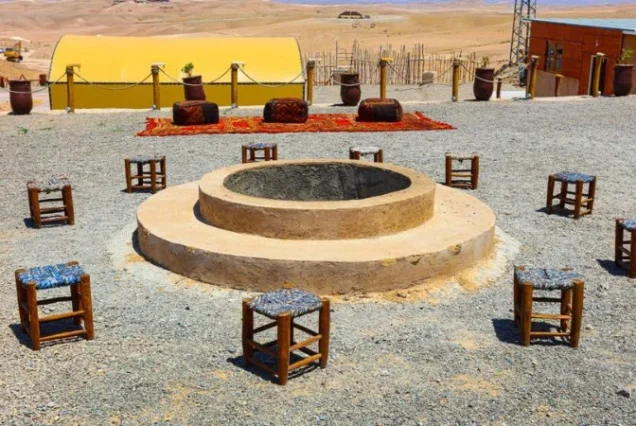 Pause at a local desert camp to relax and enjoy a traditional Moroccan lunch or mint tea. Admire the panoramic views of the Atlas Mountains in the distance as you unwind in the shade.