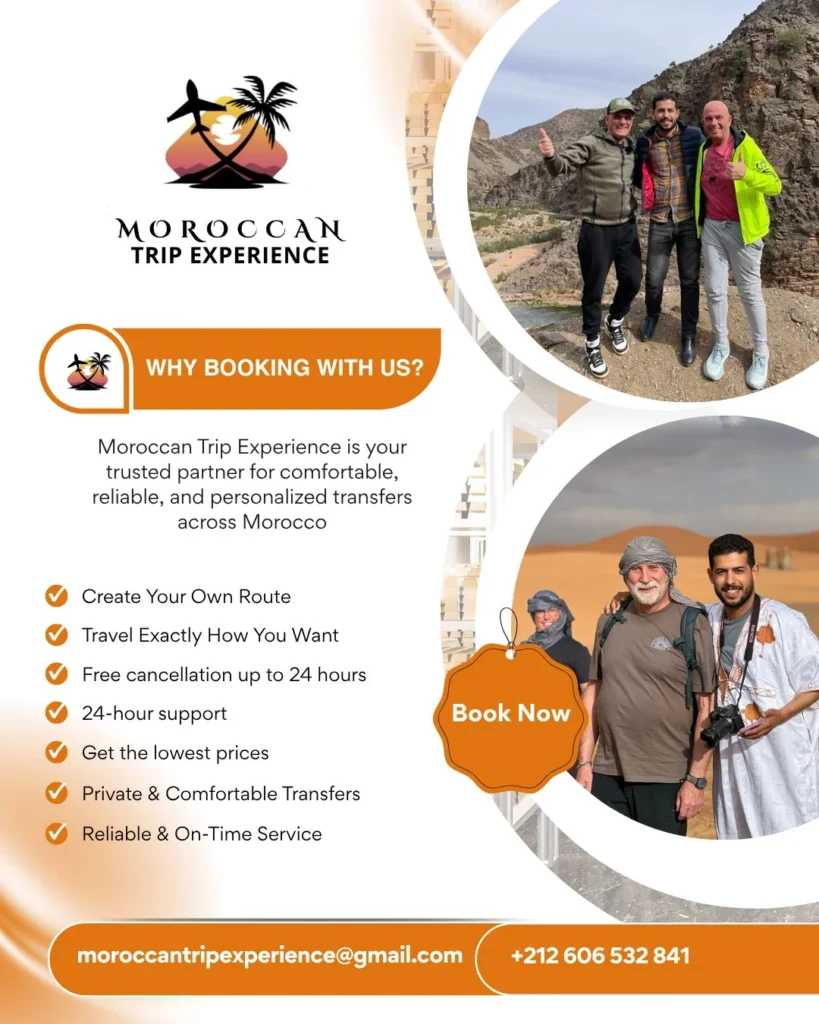 Explore the vibrant city of Marrakech in total comfort with Moroccan Trip Experience, your trusted local transfer…